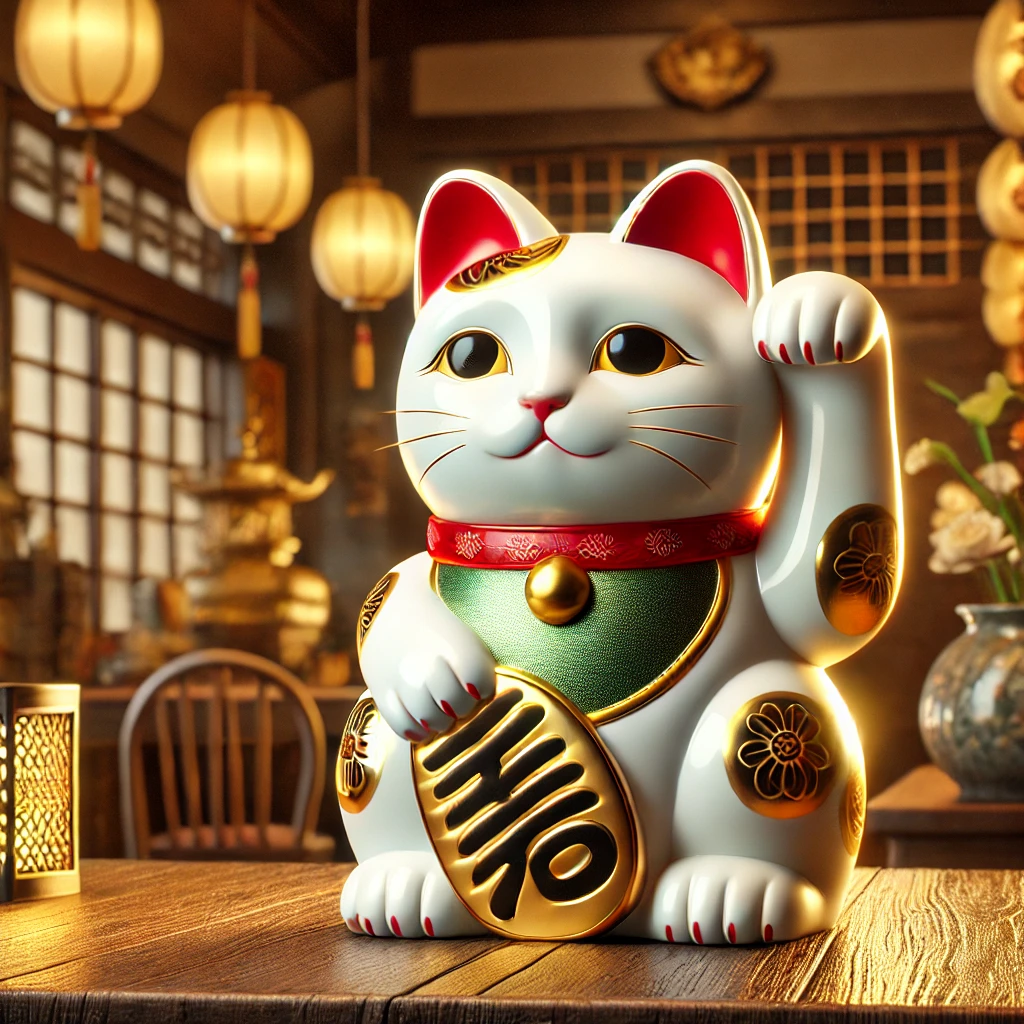 - 🐱 마네키네코(招き猫) – 손을 흔들며 사람을 부르는 듯한 모습의 고양이 장식품으로, 사업 번창과 행운을 기원하는 의미를 가지고 있어요.
