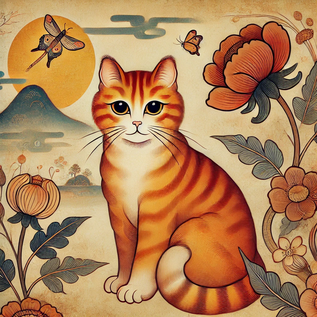 - 🎨 민화와 그림 속 고양이 – 조선 시대 민화에는 고양이가 종종 등장하며, 주로 장수를 기원하는 상징으로 그려졌어요. '까치와 호랑이' 그림에서 고양이 같은 표정을 한 호랑이도 등장하는데, 이는 민속 속에서 고양이와 호랑이가 깊은 연관이 있음을 보여줍니다.